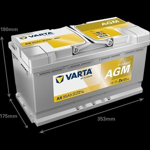 Varta 95 AGM создано для автомобилей с системой старт-стоп. Технология  AGM подразумевает то что она в ней электролита нету в жидком состояние. Электролит абсорвируется в специальный сепаратор который устанавливается под большим давлением, следствие получаем следуюшие преимущества: